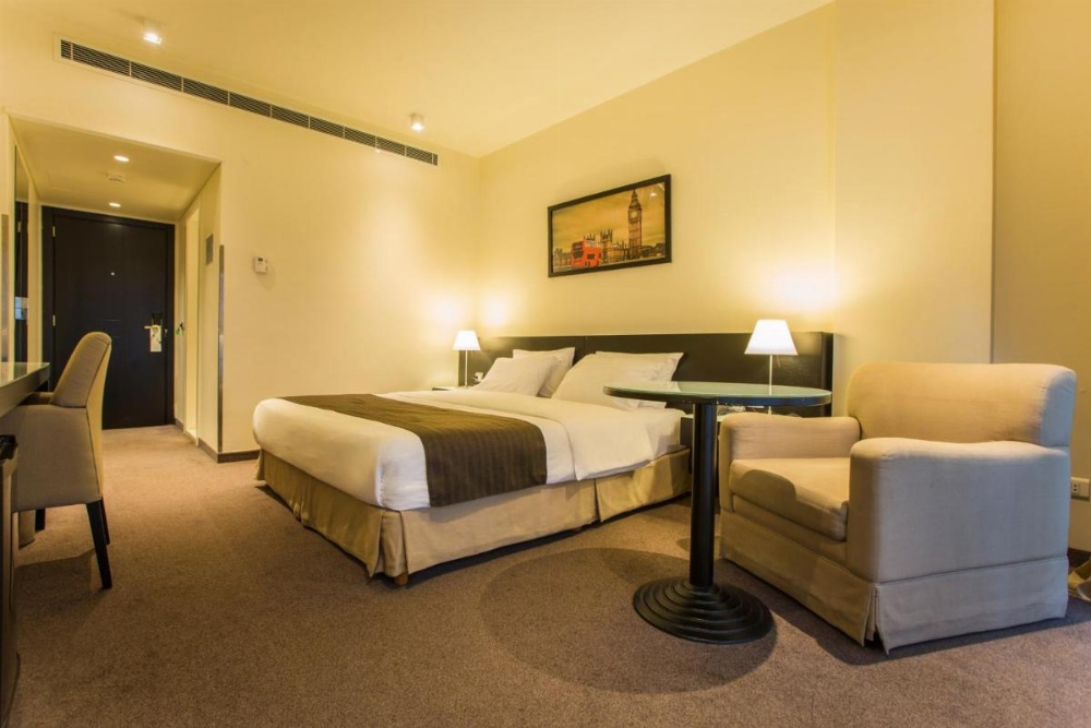 All Deluxe rooms are newly refurbished and are non-smoking. This room offers a King sized bed and a satellite flat screen TV, mini bar and a balcony. The bathroom has a walk in shower and complimentary toiletries.